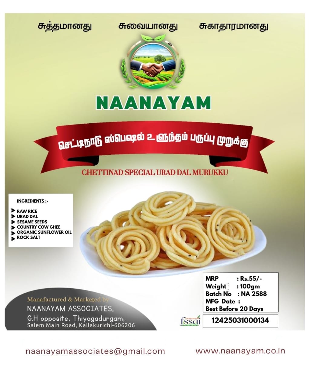 செட்டிநாடு ஸ்பெஷல் உளுந்தம் பருப்பு முறுக்கு செய்ய, நீங்கள் உளுத்தம் பருப்பை வறுத்து பொடியாக்கி, அரிசி மாவு, எள்ளு, பெருங்காயத்தூள், நாட்டு மாடு நெய், மற்றும் உப்பு சேர்த்து பிசைந்து, முறுக்கு அச்சில் போட்டு சுத்தமான சூரிய காந்தி எண்ணெயில் பொரித்தெடுத்த செட்டிநாடு ஸ்பெஷல் உளுந்தம் பருப்பு முறுக்கு.